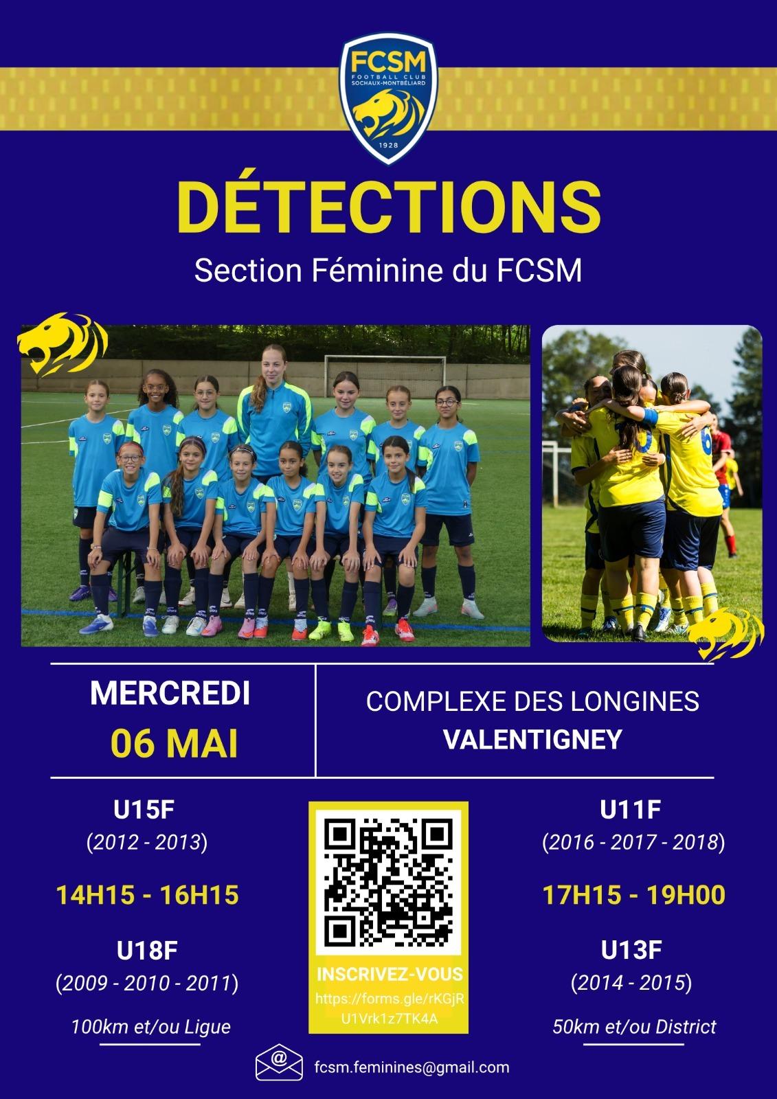 Le FC Sochaux-Montbéliard organise le mercredi 6 mai 2026 des détections au Complexe Sportif des Longines de Valentigney pour renforcer la section féminine du club.