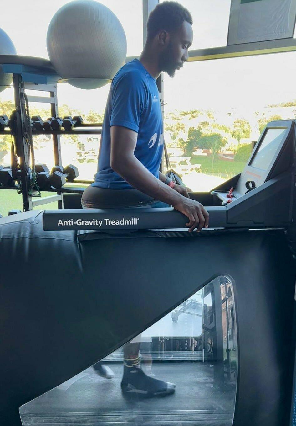 Victime d'une fracture du 5e métatarse pendant la période de préparation des Jaune et Bleu, Mouhamadou Drammeh poursuit sa rééducation à Capbreton.